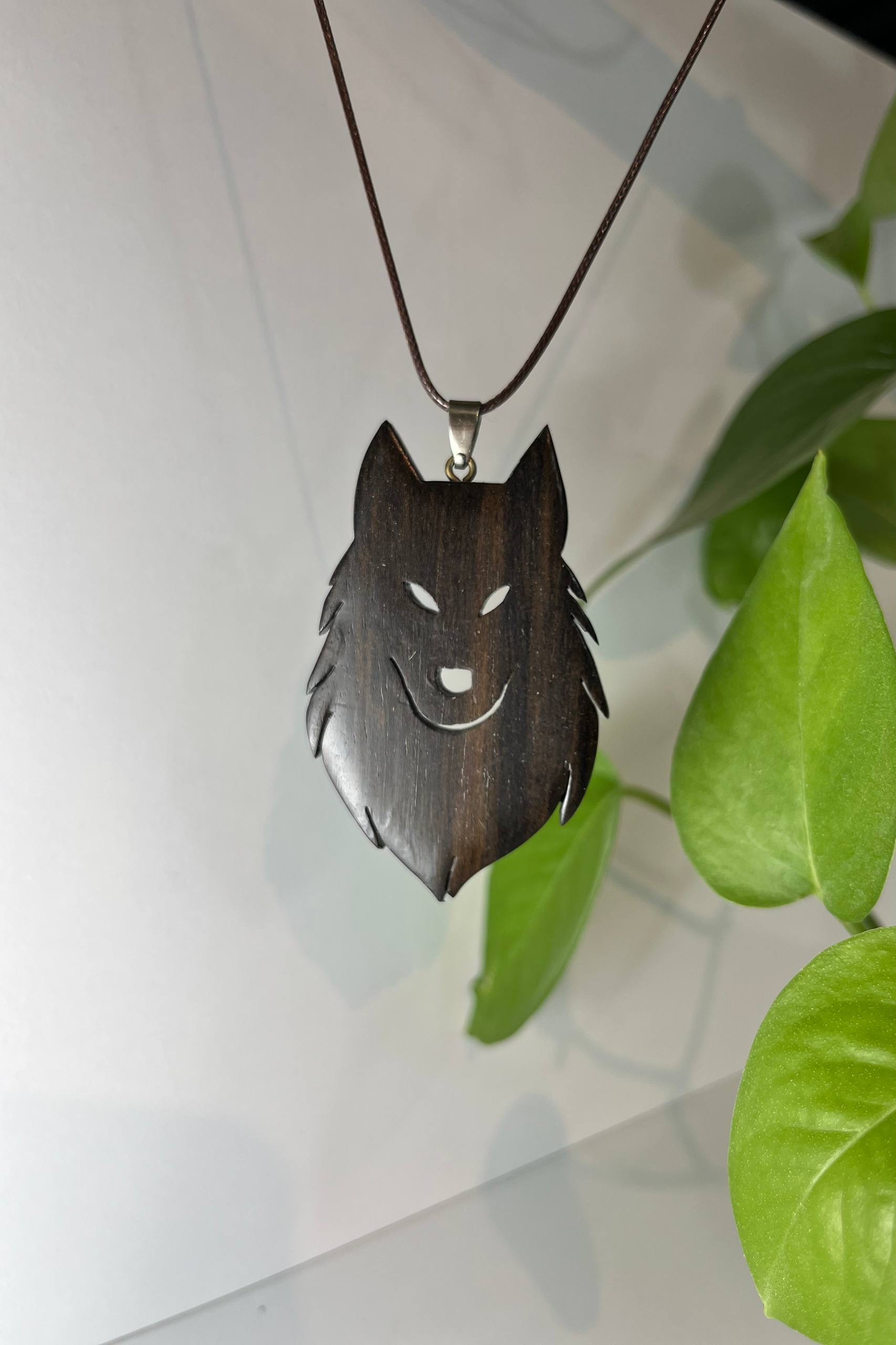 گردنبند گرگ چوبی آبنوس، اثری دستساز و نمادین است.