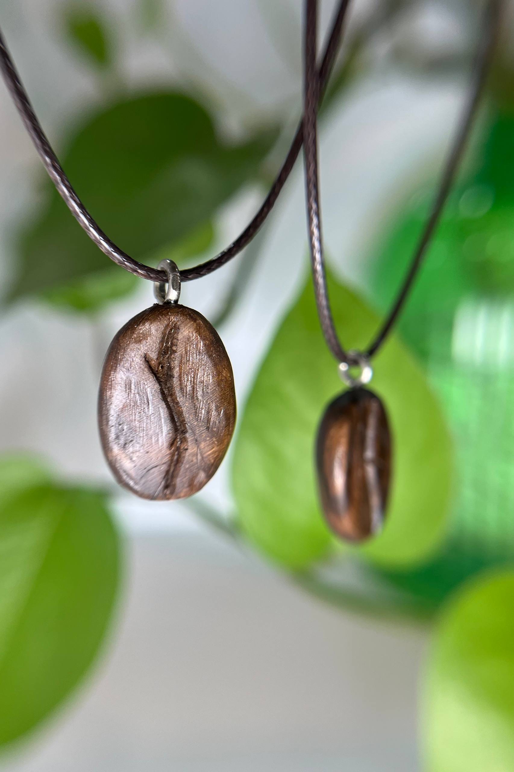 گردنبند دانه قهوه ساخته شده از چوب طبیعی، اثری خاص و دستساز از کارگاه ملورینا است.