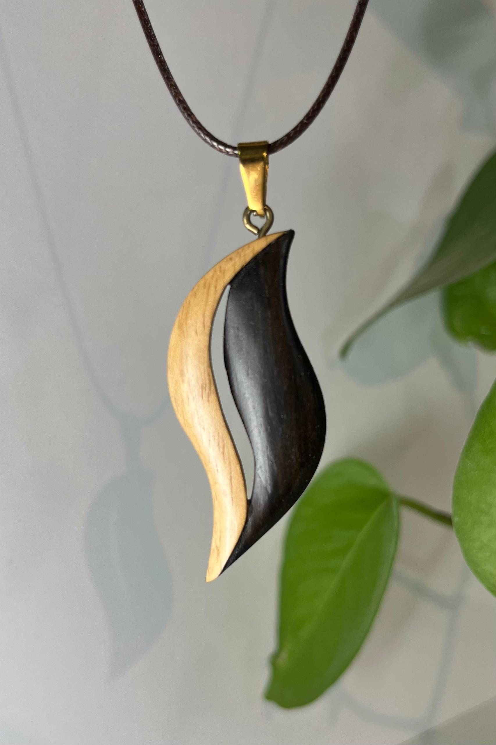 گردنبند چوبی «دوگانگی آرام» تلفیقی از تضاد و هماهنگی است؛