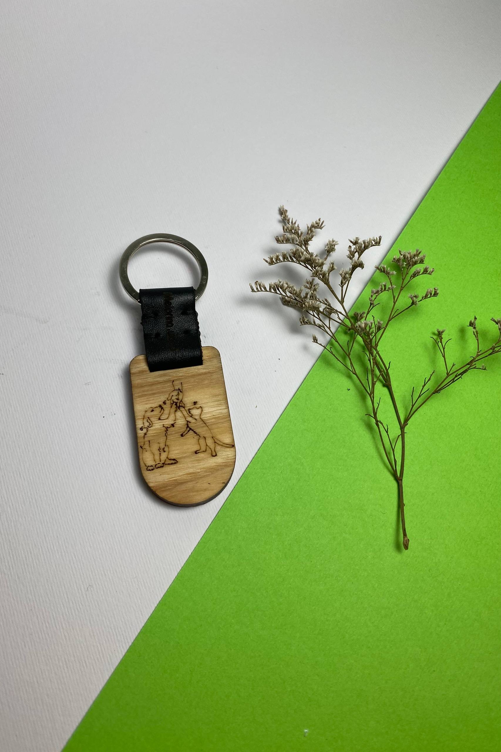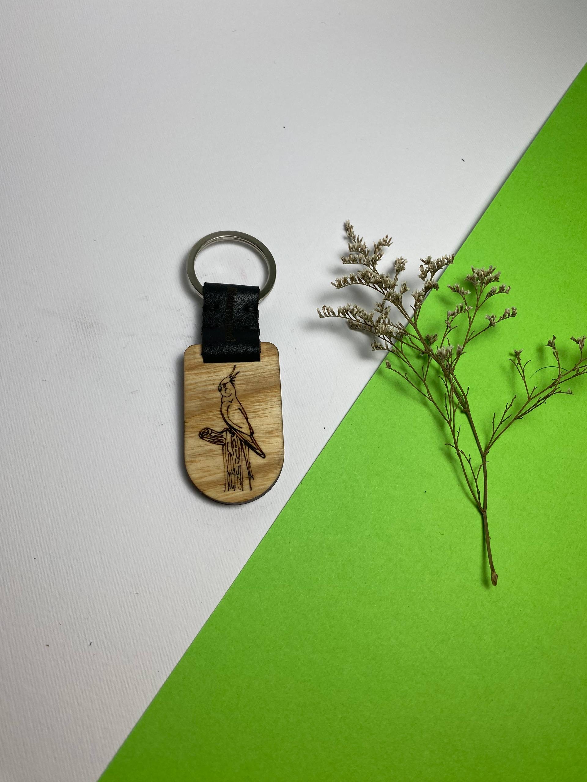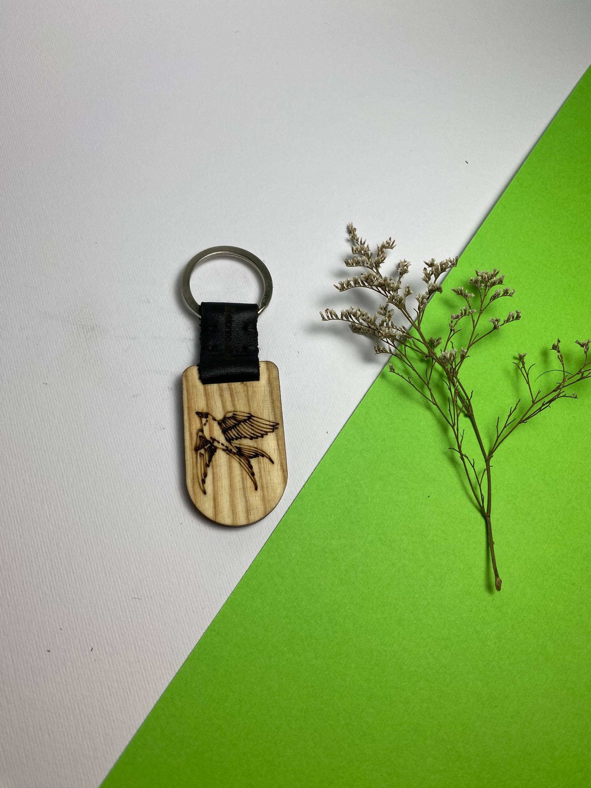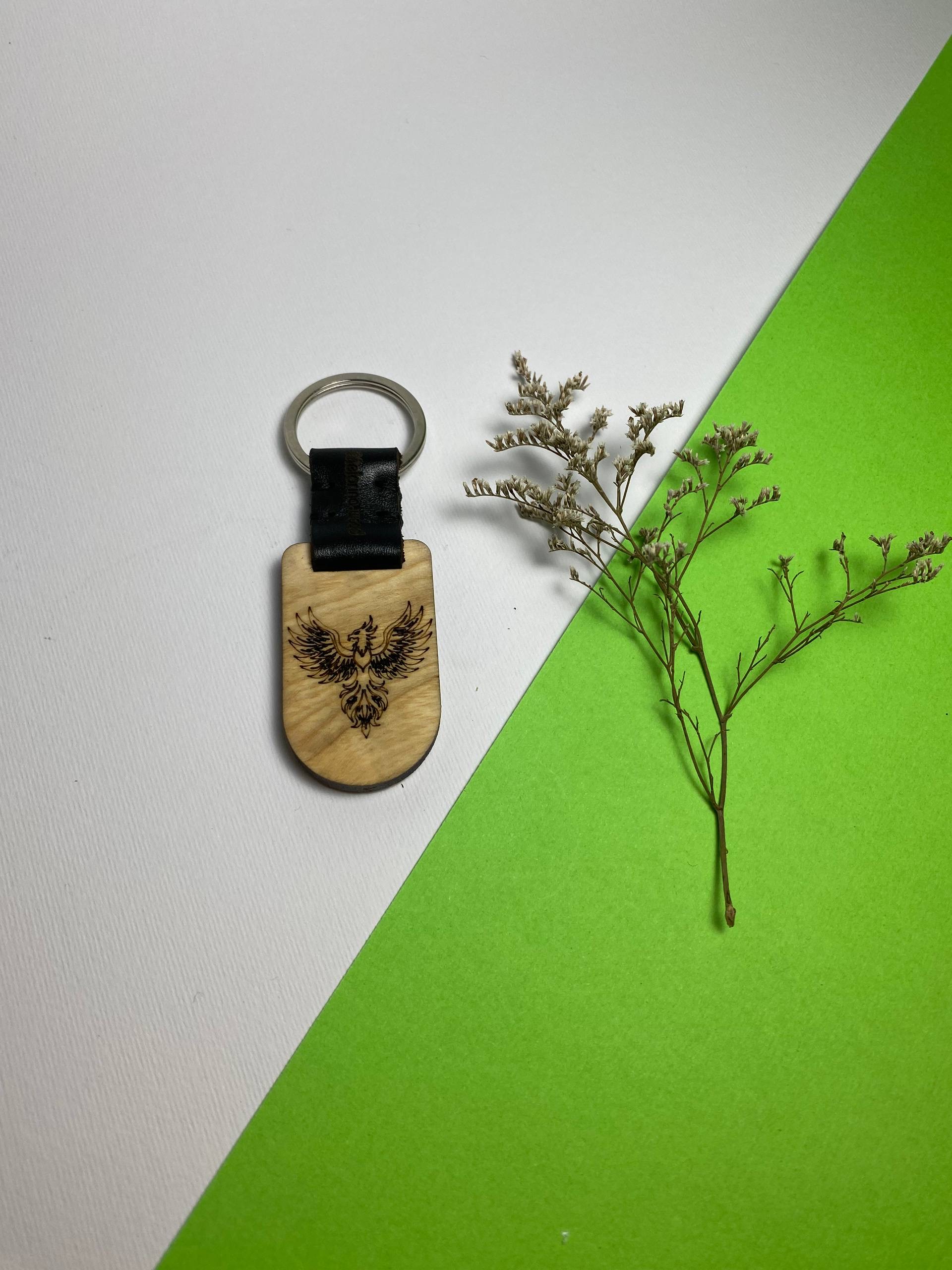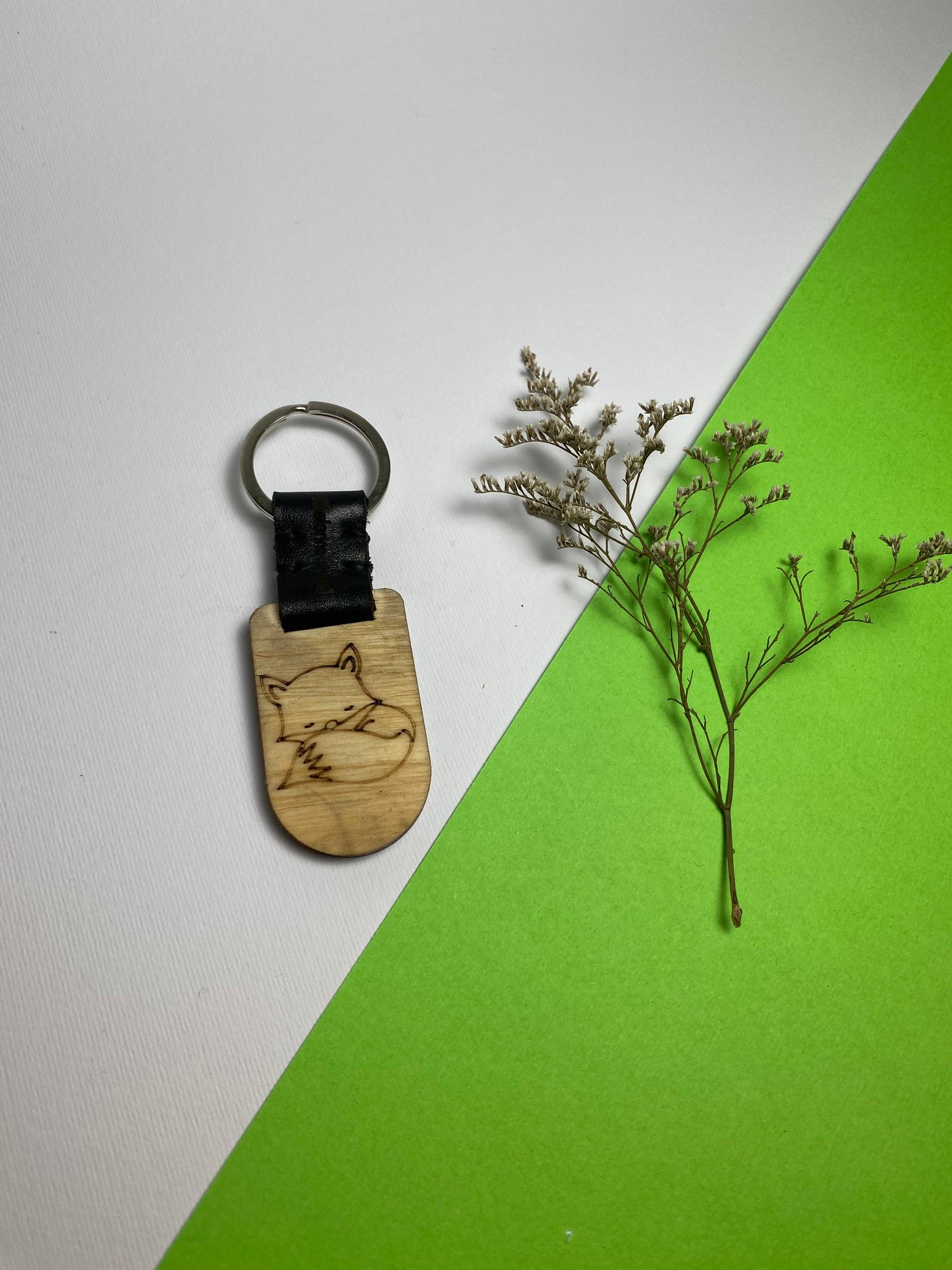 جاسوئیچی دست‌ساز با چرم طبیعی و چوب افرا و ون، مجهز به حلقه ضدزنگ