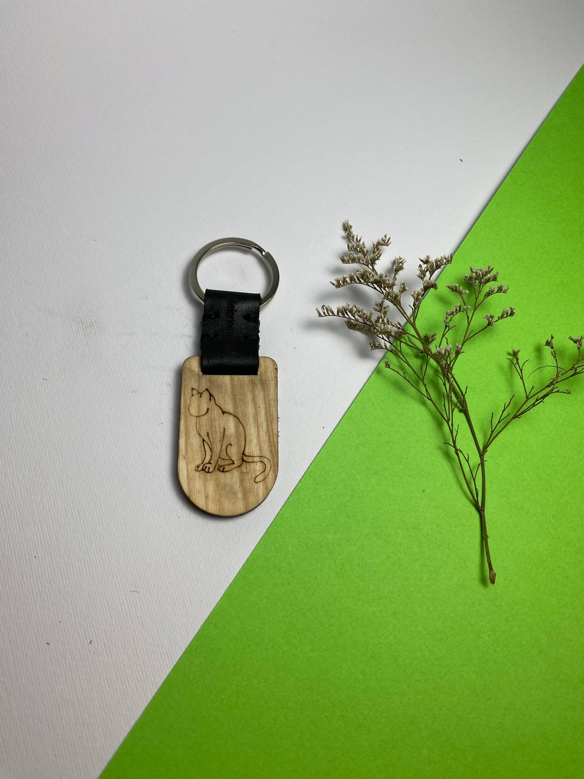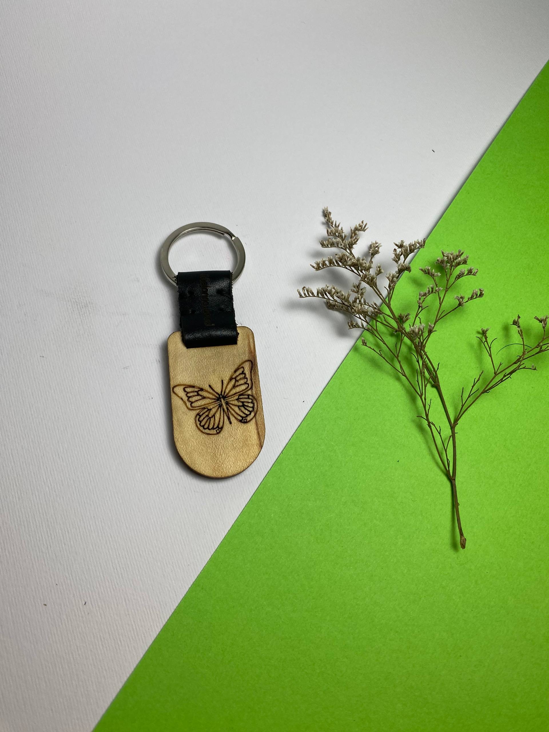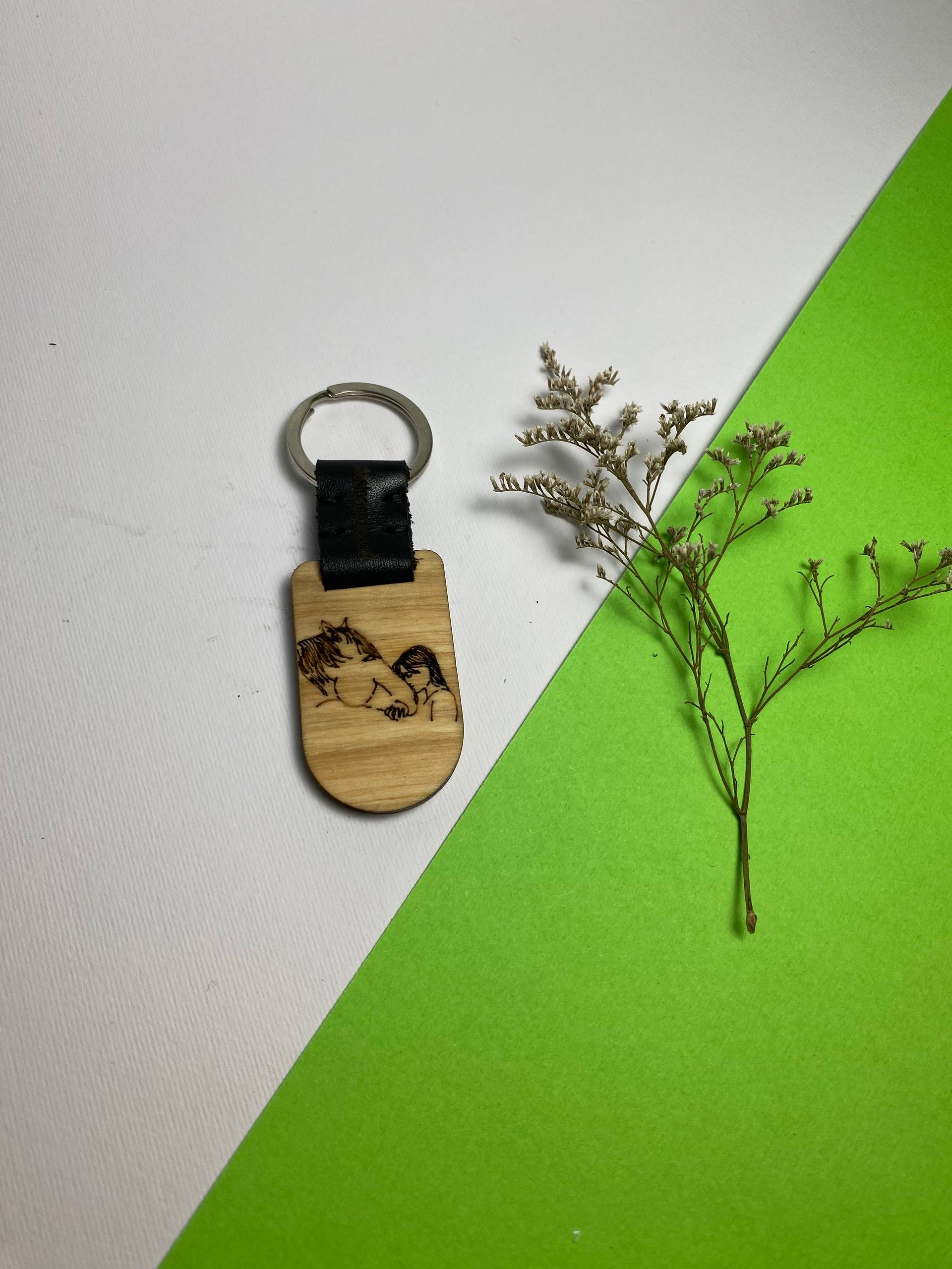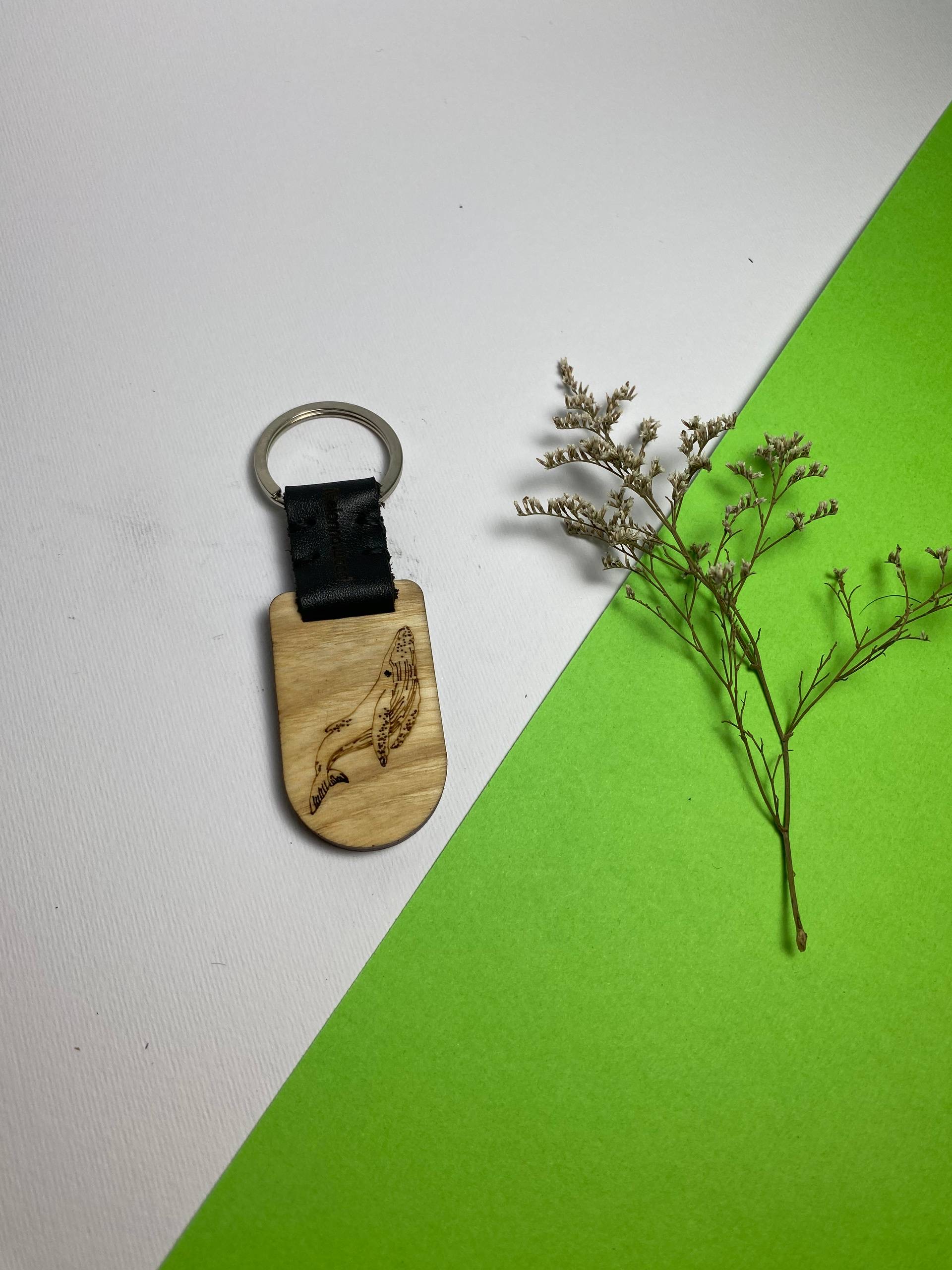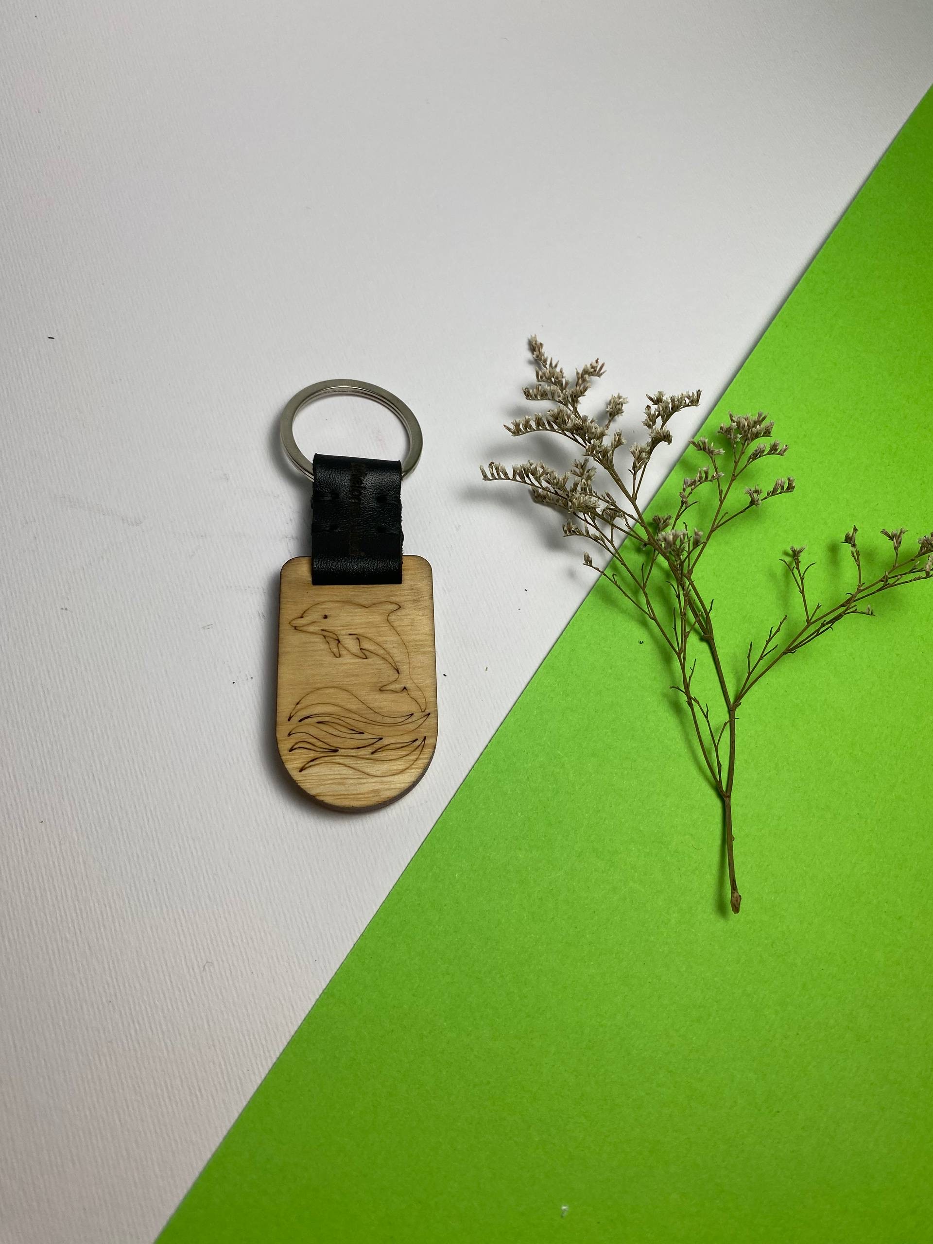 جاسوئیچی دست‌ساز با چرم طبیعی و چوب افرا و ون، مجهز به حلقه ضدزنگ