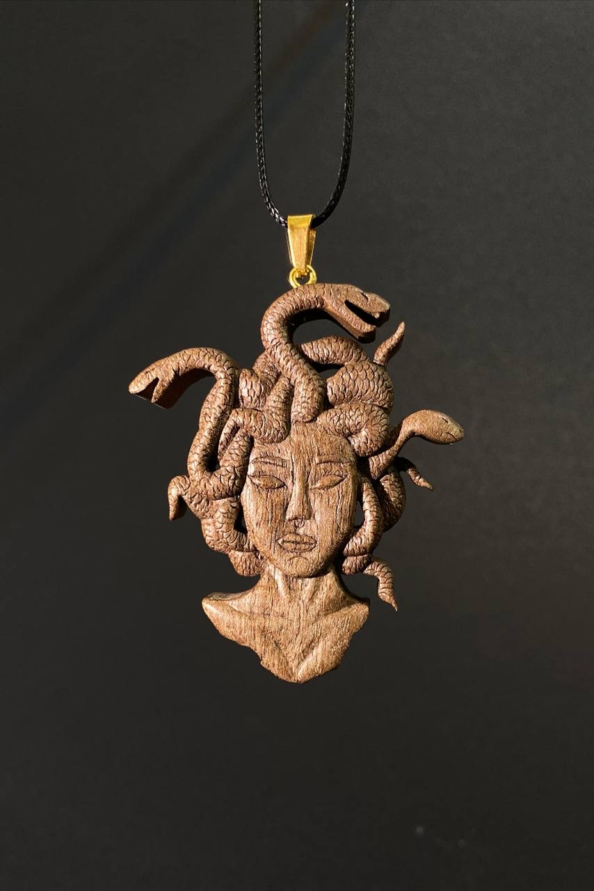 گردنبند «مدوسا»، تجسم قدرت، جذبه و هنر اساطیری در کالبد چوب گردو است.